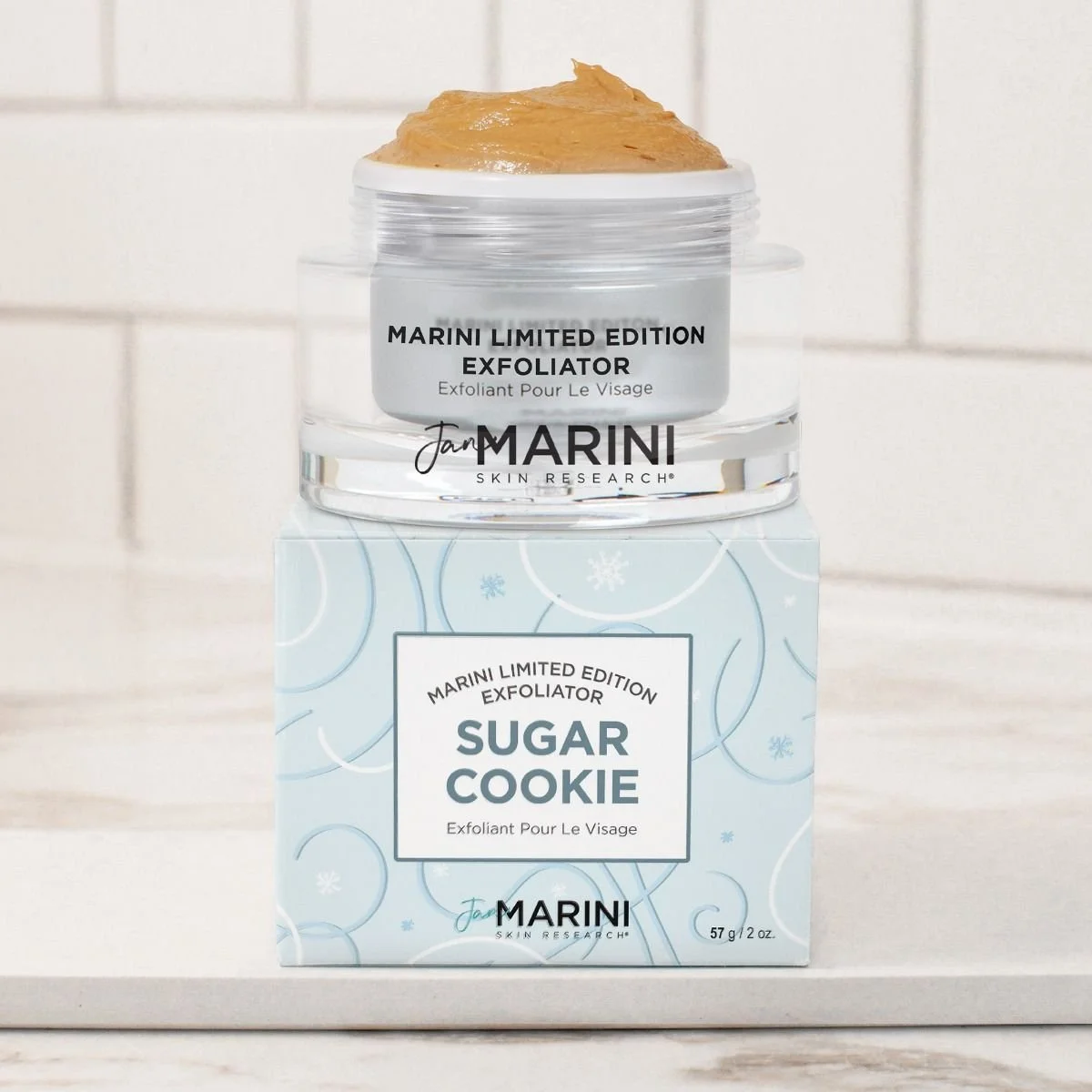 3 different types of exfoliators: Chemical (Glycolic Acid), Physical (Synthetic Wax Beads), and Enzymatic (Papaya Extract, Papain, and Bromelain) work together to gently and safely exfoliate the skin without harsh abrasives (common within typical exfoliators). Combined with potent antioxidants, and skin conditioning agents, the Jan Marini Limited Edition Exfoliator with the delectable scent of sugar cookie will leave your skin silky-smooth and glowing!